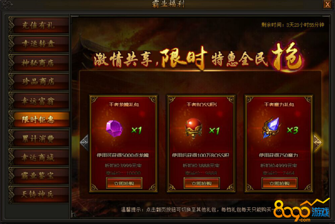 • 霸业福利7月5-8日激情共享 特惠全民抢