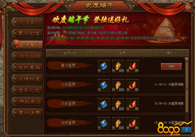 活动内容:活动期间每日首次登录以及特定时间段登录则可以免费领取奖励