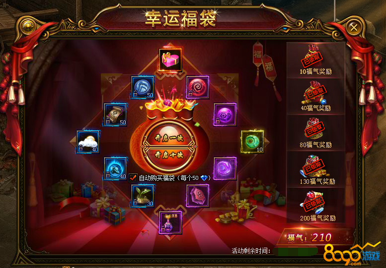 • 福气奖励需要在活动时间内领取,每次活动结束后福气清零,请及时领取!