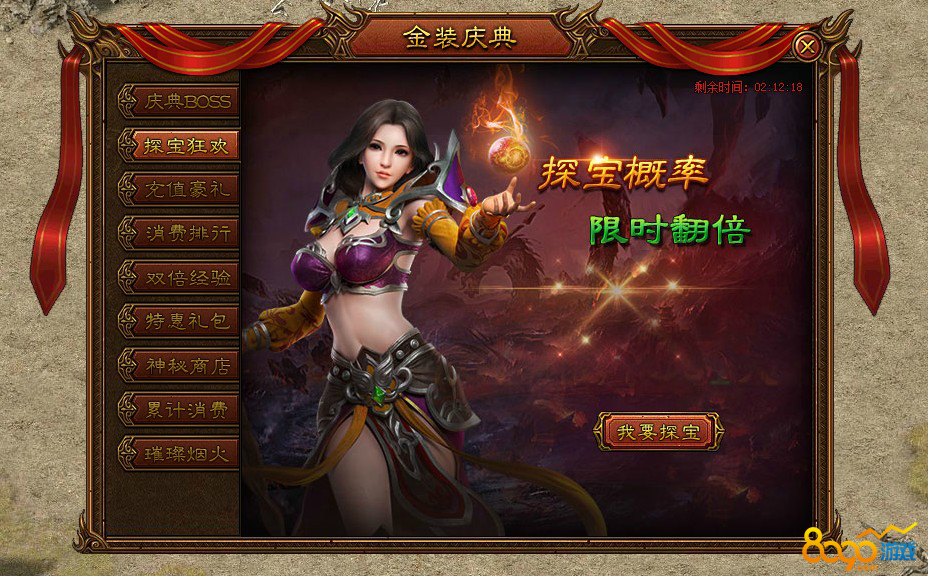 活动内容:活动期间内,探宝获得极品道具概率翻倍,海量装备随心获取!