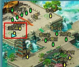 洛水殿位于洛水城左上角,由NPC“南宫杰”处点击进入。