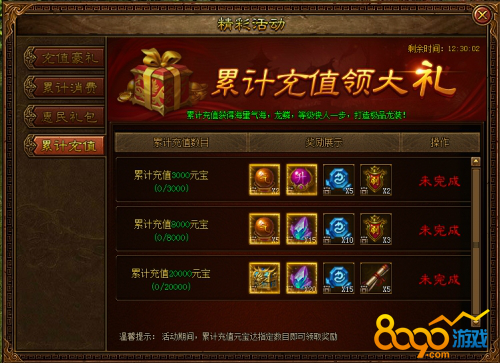 活动内容:活动期间达到累计充值即可领取大量超值奖励!