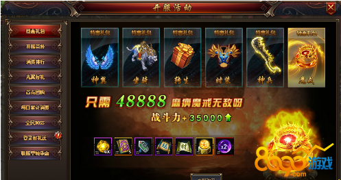 8090《猛将天下》首服震撼开启! 游戏内只要在开服时限内在开服活动界面购买礼包即可获得超值好礼,帮你战斗祝你高速升级。单人或组队击杀BOSS都可以完成任务,丰厚奖励,高阶装备等着你!赶快召唤同伴一起挑战吧