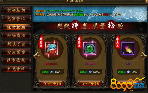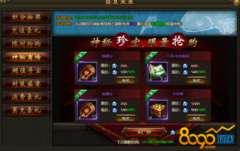 2. 活动期间内,神秘商场每日刷新各种珍稀道具,打折出售限量抢购。