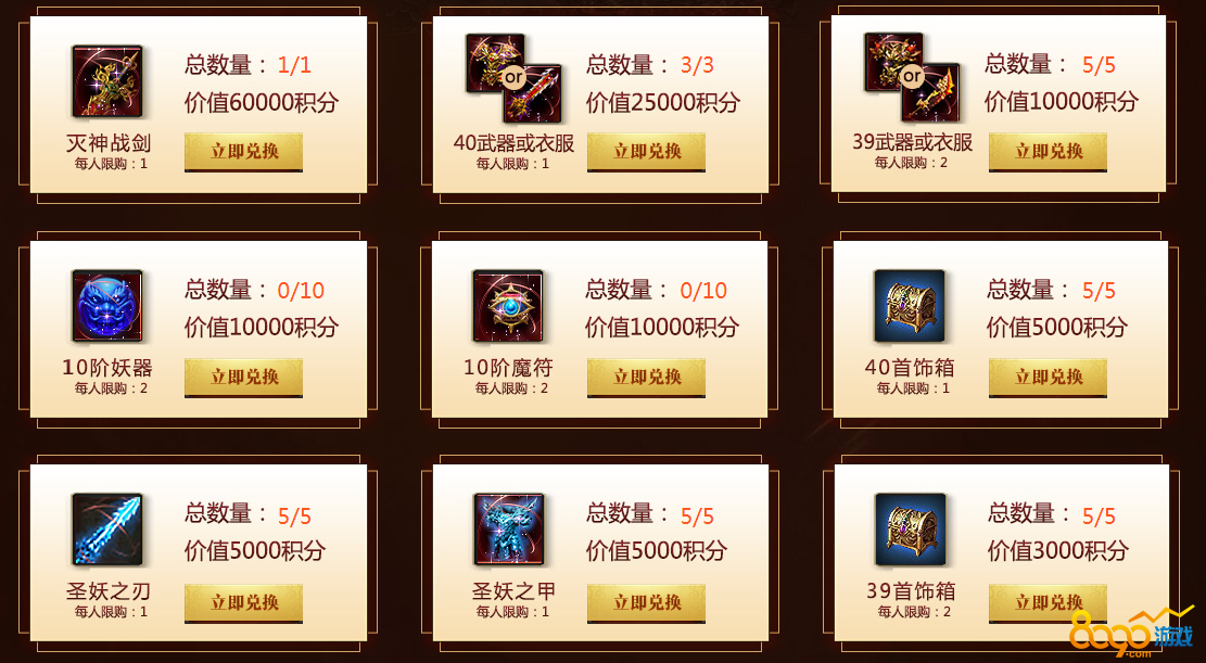 • 灭神10月18日-10月20日线下签到送礼包 充值积分兑灭神战剑