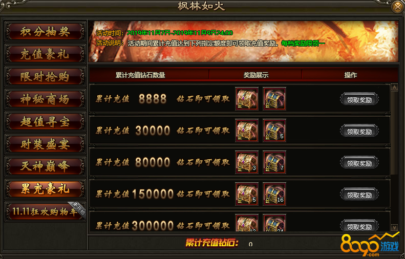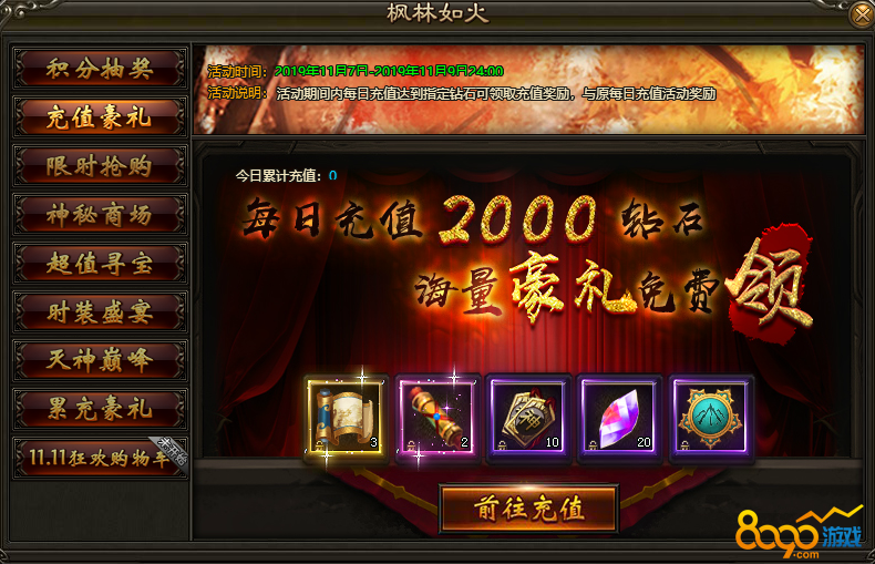 2.活动期间内,每日充值达指定钻石数额,即可领取充值奖励,可原每日充值奖励叠加领取。