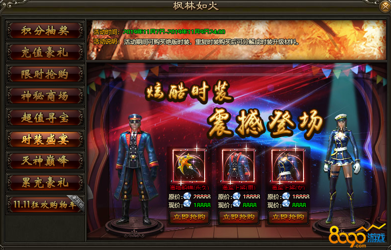 2.活动期间内,玩家可购买绝版活动时装,每个玩家限购一次