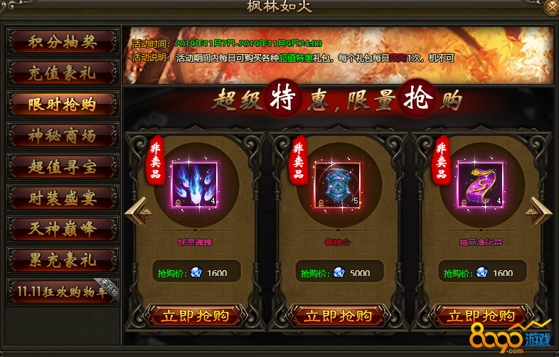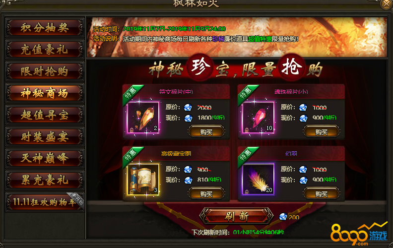 2.活动期间内,神秘商场每日刷新各种珍稀道具,打折出售限量抢购。