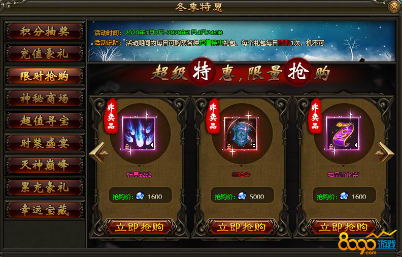 2.活动期间内,神秘商场每日刷新各种珍稀道具,打折出售限量抢购。