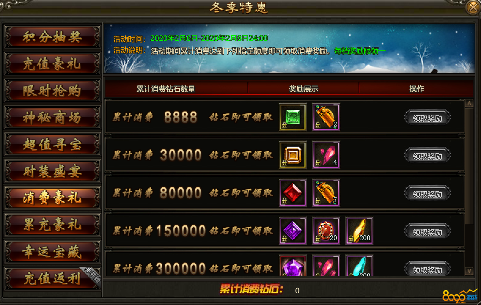 3.有两档奖励可领取:2000钻石、20000钻石。每档都有丰厚豪礼免费领取。