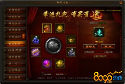 活动期间,每购买一次礼包可获得一次抽奖机会,还可花费元宝进行刷新!抽奖次数和礼包购买次数每日零点清零,请及时抽奖。