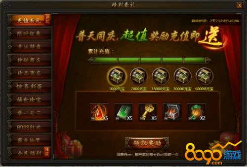活动期间,充值元宝即可领取五档丰厚奖励,每天均可领取一次,不容错过!