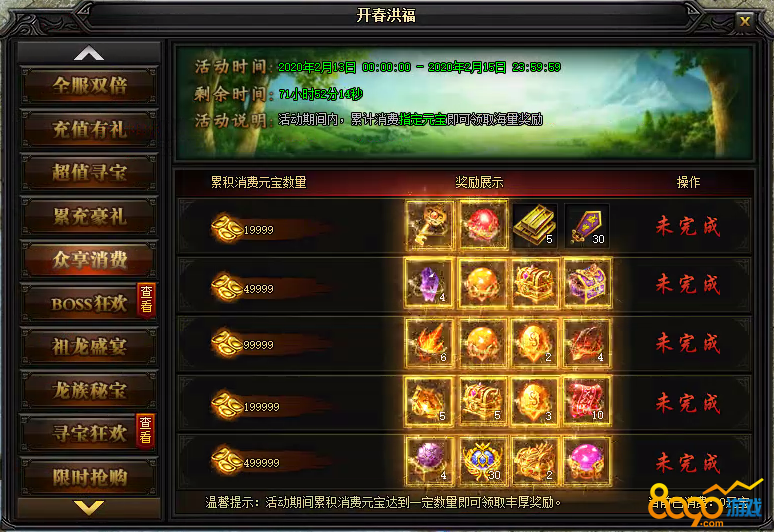 活动说明 : 活动期间内,累计消费指定元宝即可领取海量奖励