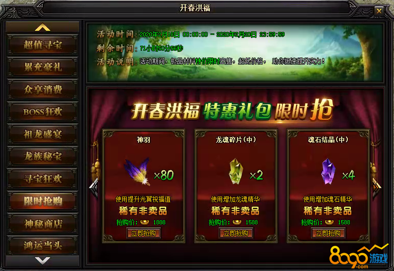 活动说明:活动期间,极品材料特价限时出售,超低价格,助你迅速提升实力!