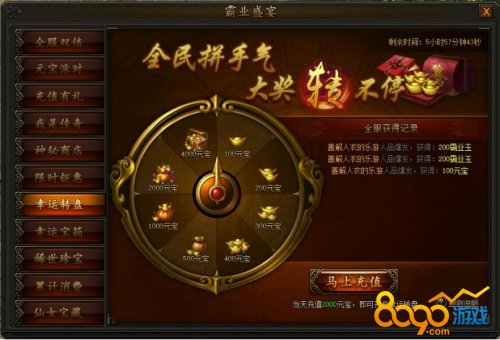 活动期间,充值并消费一定元宝即可使用幸运转盘,获得大量元宝道具,使用获得元宝后即可前往商城内购买珍稀道具,精彩不容错过。