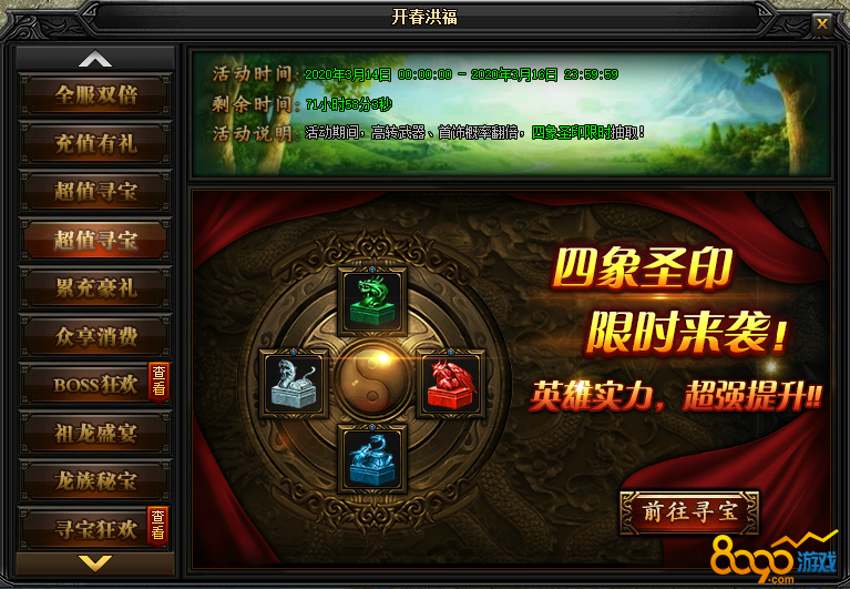 活动说明2:活动期间,高转武器、首饰概率翻倍,四象圣印限时抽取!
