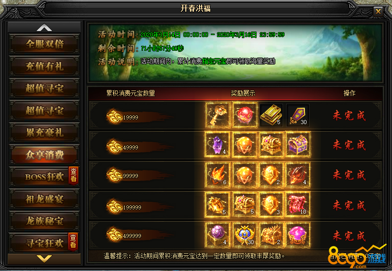 活动说明 : 活动期间内,累计消费指定元宝即可领取海量奖励