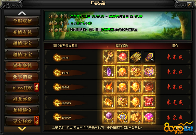 活动说明 : 活动期间内,累计消费指定元宝即可领取海量奖励