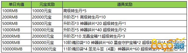 活动规则:单日充值满足条件可以领取对应的元宝与道具奖励