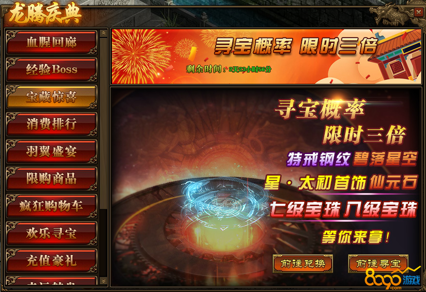 1.活动期间,玩家寻宝概率翻倍,极高几率获得星·太初首饰,特戒钢纹、仙元石、碧落星空,传世灵器、传世灵甲,七级宝珠以及八级宝珠