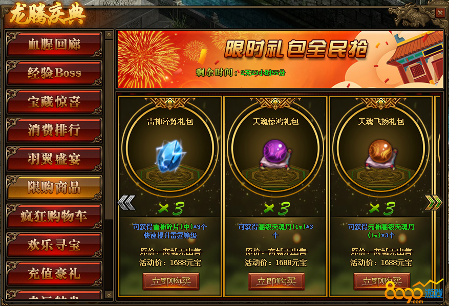 1.活动期间,玩家可在活动面板购买限购商品;(可翻页)