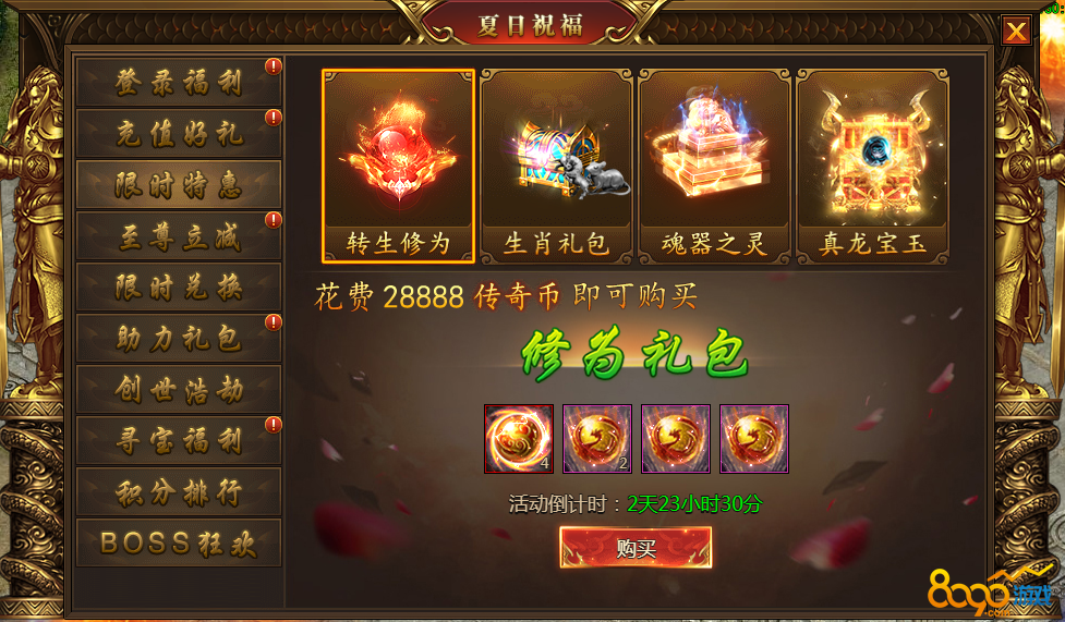 活动内容:活动期间可消耗传奇币购买特惠礼包