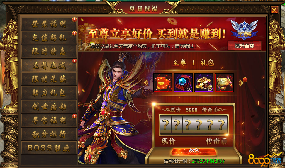 活动内容:活动期间满足至尊等级条件可消耗传奇币购买各种砍价礼包