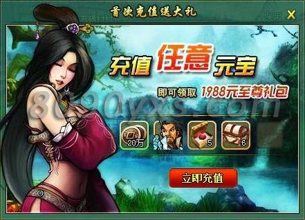 活动内容:充值任意金额既可获得价值1988元的至尊礼包