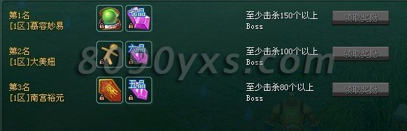 活动内容:活动期间内击杀BOSS数量排名前3的玩家可免费领取BOSS王奖励,海量道具任您拿!