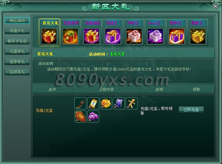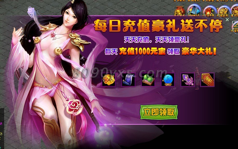 【活动内容】8090《怒斩》玩家每日只需充值1000元宝即可免费领取每日充值大礼包