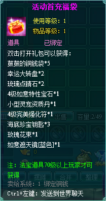 累计充值1元宝 活动首充福袋 活动时间内只能领取一次