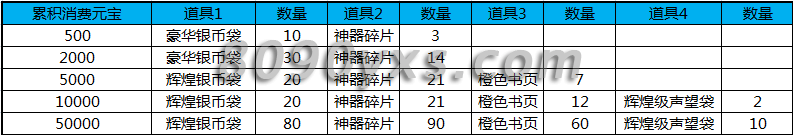 活动内容:活动期间,玩家消费一定的元宝数量,即可获得额外奖励!奖励可以累计领取,如消费达到50000元宝,玩家点击领取奖励,就可以获得全部奖励。