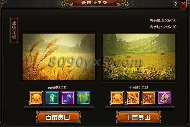 1、 麦田分为两种(百亩良田、千亩良田),每次可以选择一种麦田