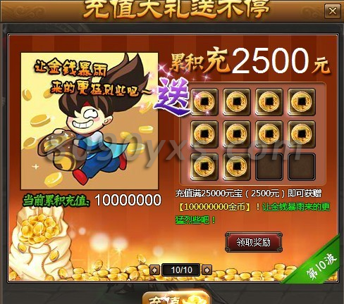 10、给力的,总是姗姗来迟,充值累计2500元,奖励金币天文数字!