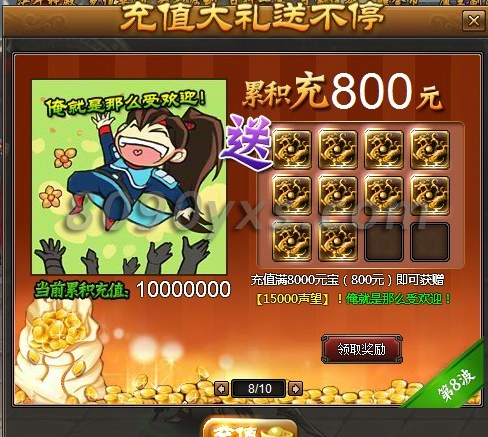 8、累计充值满800元,声望给力送,15000声望等你拿。