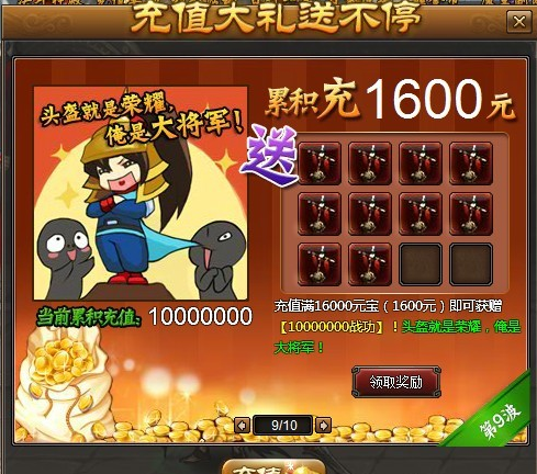 9、还有还有,充值满1600元,战功哇哇的升。亲还在等什么!!