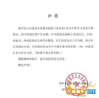 宋威龙的工作室在今天就发布了公告,表示视频中的确实是林允,但是两人只是因为在一起拍戏,所以有了好感决定尝试在一起。