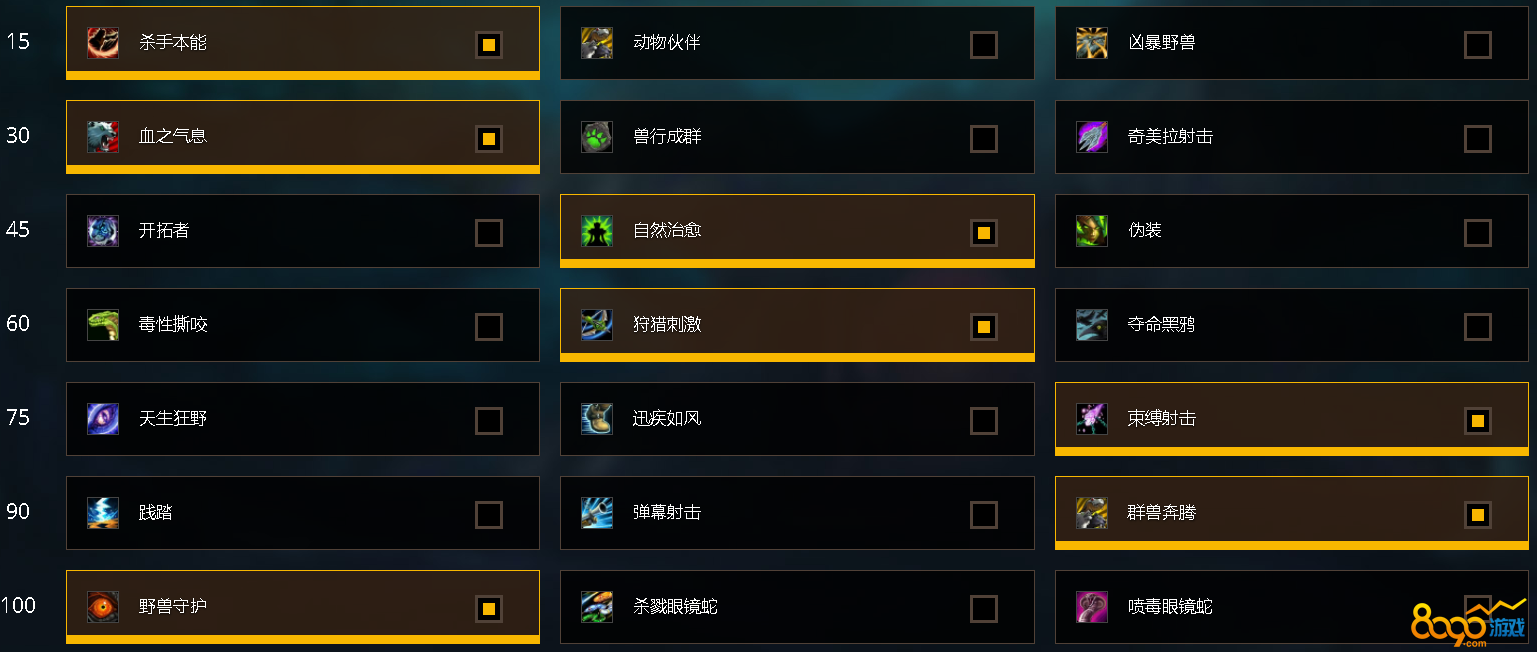 猎萨组合是个小众组合,所以兽王猎和奶萨是个很好的组合,首先介绍一下猎人的天赋: