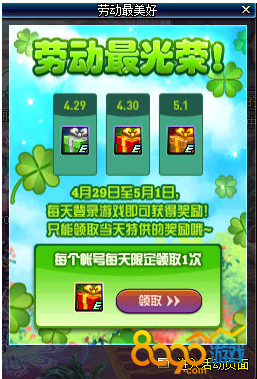 4月29日到5月1日,也就是五一劳动期间会更新一波劳动节的活动,在活动期间每日登录游戏后会领取到每日游戏礼包,分别是勤勤恳恳签到礼盒、兢兢业业签到礼盒以及红红火火签到礼盒,第一天和第二天的礼盒内容都是2张星空裂缝通行证和1个抗疲劳秘药(30点),只有红红火火礼盒开的是10张星空裂缝通行证。