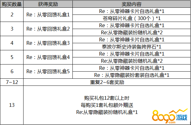前6次购买获得的奖励如上所示,第7套到13套的奖励,依旧是重复2到6套的奖励。