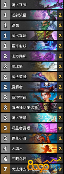 在面对控制卡组的时候,我们的思路就要转变一下,起手就要去找大法师和巫师学徒,尽量多的去刷火球,这样我们在后期就可以用茫茫多的火球加上寒冰箭和霜冻射线的combo直接砸对面脸。