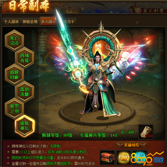 搜索"8090网页游戏"传奇世界近日更新的副本铸炼神坛是干什么用的,副本如何玩,玩家通关铸炼神坛副本可以获得什么样的道具奖励呢,今天小编我就来给大家介绍介绍吧~