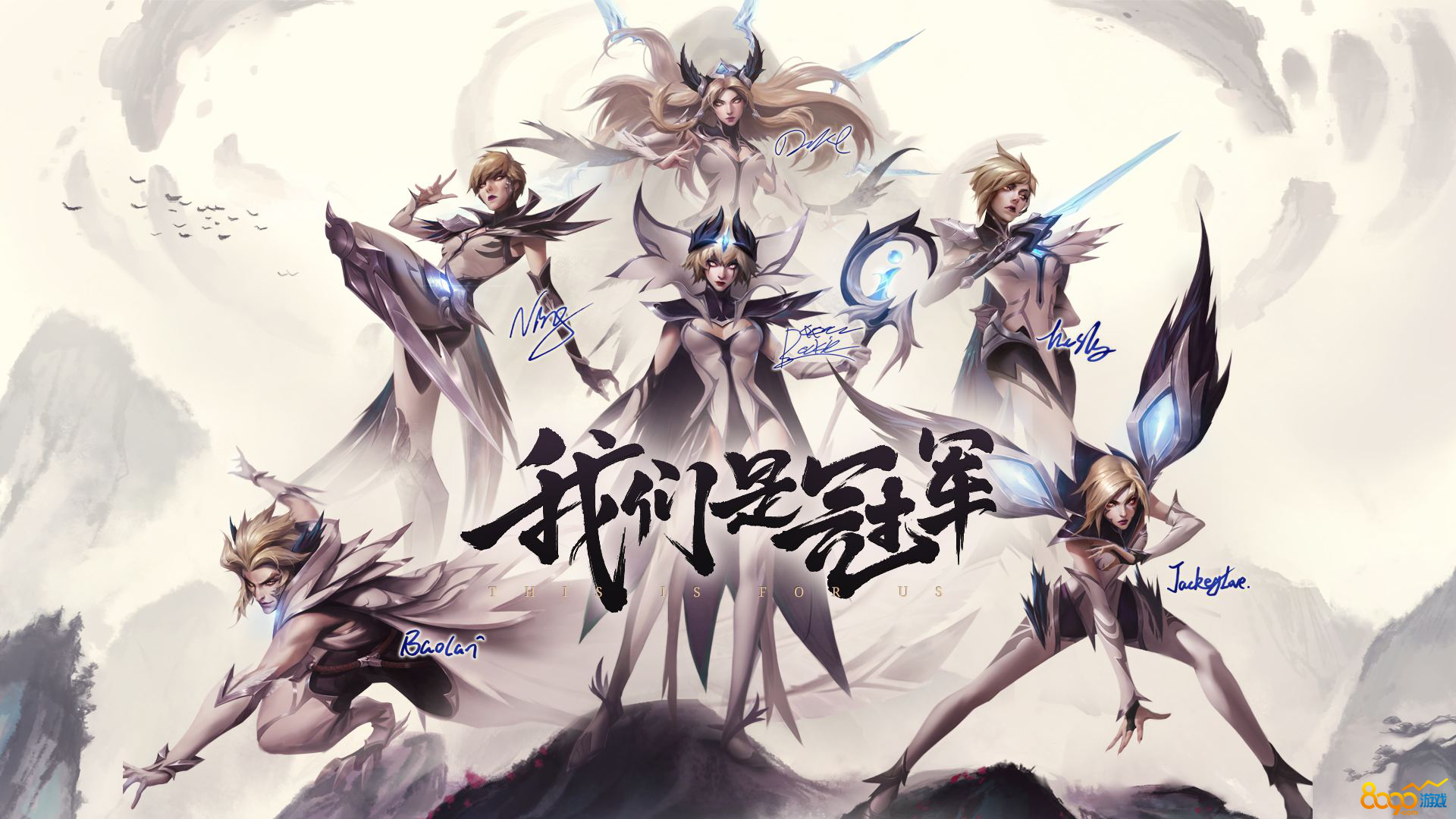不可否认的是拳头在冠军皮肤的设计上面都是有其独到之处的。本次IG战队的冠军皮肤为IG战队选手在全球总决赛期间使用过的招牌英雄,分别是乐芙兰,卡蜜儿,艾瑞莉娅,菲奥娜,洛以及卡莎。这套皮肤在设计上融入了极具中国特色的水墨元素,以黑白蓝三色为基调呈现出了浓浓“中国风”画面。而且在英雄回城以及游戏载入时均有IG成员的签名和IG的图标浮现,具有很好的纪念意义~