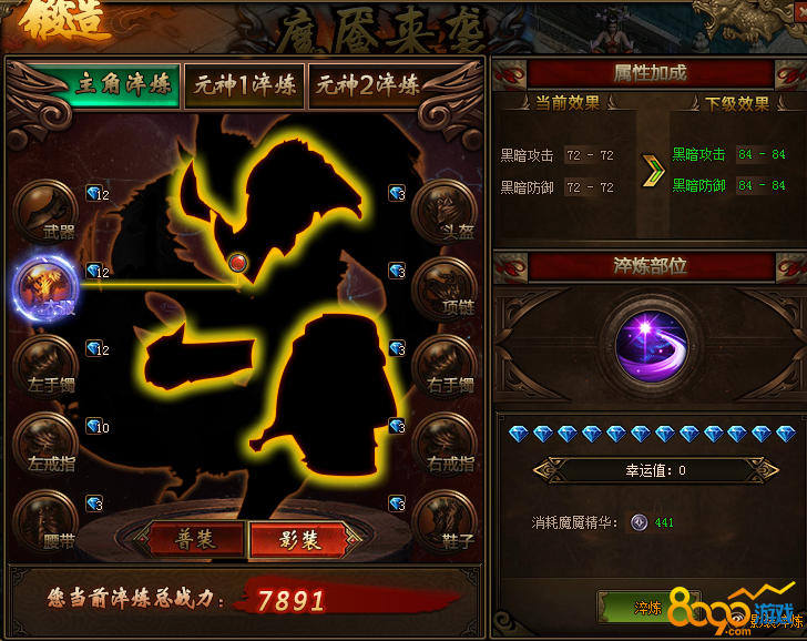 传奇世界网页版游戏中的影装可以增加角色的黑暗攻击,以及黑暗防御属性,影装的淬炼规则跟普通战装基本相似,影装的淬炼的对象也是影装的部位,当玩家进行更换影装时,获得的属性也会永久的保留,高级的影装淬炼会有一定的概率失败,玩家可以使用元宝来提升概率来达到100%的淬炼成功率,每个部位的淬炼等级达到一定的等级时会额外获得特殊属性加成增加一定的星辰伤害,玩家可以通过消耗魔魇精华对影装进行淬炼,魔魇精华需要玩家击杀魔魇来袭中的BOSS获得影装回收获取~