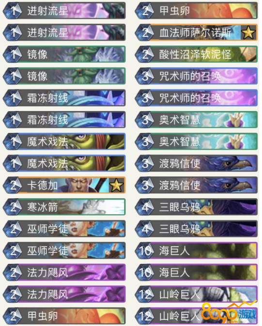 卡德加、咒术师的召唤以及巨人的配合,在中期也能给到对面很大的压力,根本拖不到后期就可以提前结束游戏,这套卡组目前的使用率不高,可以给对面一个误判,小伙伴们赶快拿去上分吧。