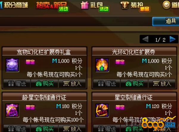 首先是积分商城的更新,下架了增幅券以及增幅器,更新上架的是宠物幻化栏扩展券礼盒以光环幻化栏扩展券,宠物幻化栏扩展券的话比较坑,需要等7月4日版本更新后才能用,也就是2个月后,自行斟酌,个人觉得不太值得,既然更新了幻化栏还和光环的一样积分兑换,那么估计也是38块商城出售了。