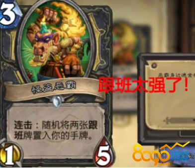 这是呼声最高的一张卡,盗贼的职业卡怪盗恶霸,3费的随从拥有五费的血量,连击效果还是给两张跟班卡,如果后手的情况下,二费跳币上这个,那基本上可以宣告游戏结束了,当然不是说这张卡有多BUG,而是盗贼的跟班体系实在是有点强。