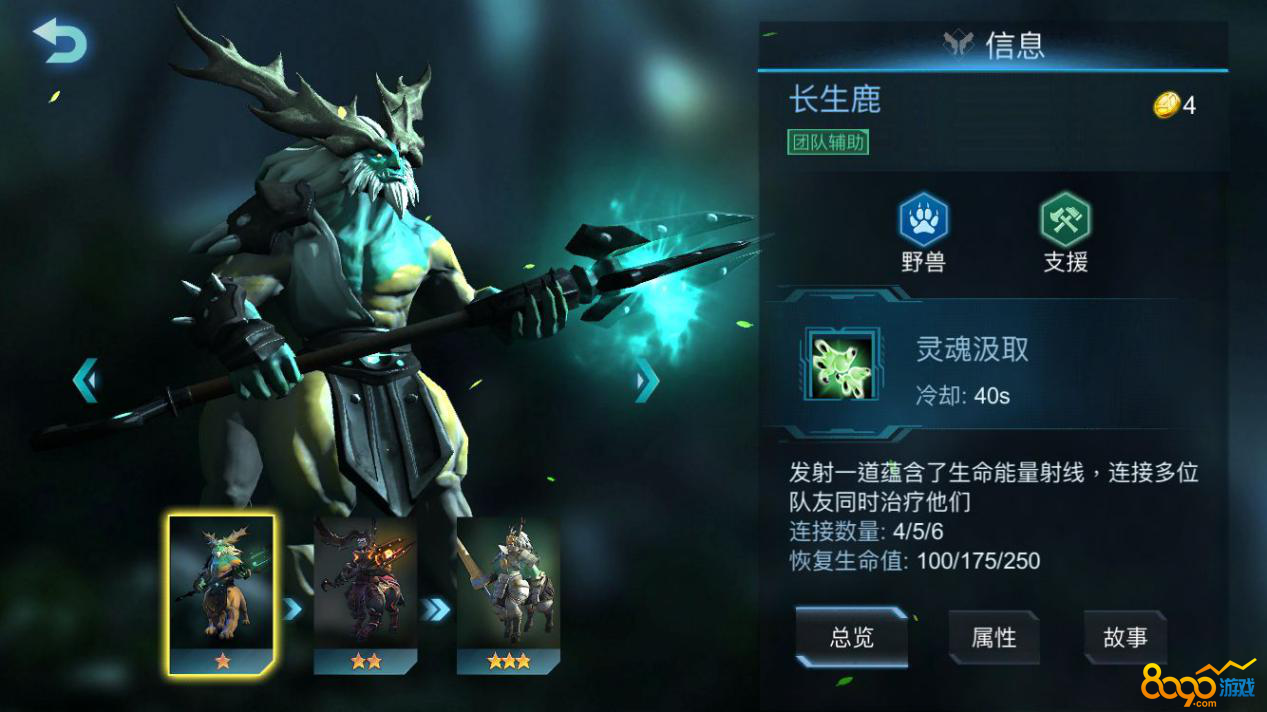 恢复的生命值还是很客观的,建议玩家升到2星就用升级了,第一因为这个技能的冷却时间就注定了他一回合只能释放一次,第二2星到3星需要4个2星,但是他的3星只比2星多了75的治疗量小编觉得太亏