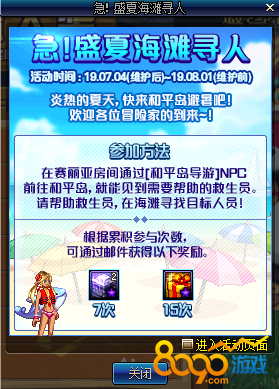 谢谢玩家们观看DNF盛夏海滩寻人NPC和平岛导游的位置和和平岛的进入方式,还没参加这个活动的玩家们快点去参加吧,下次再见,拜拜~