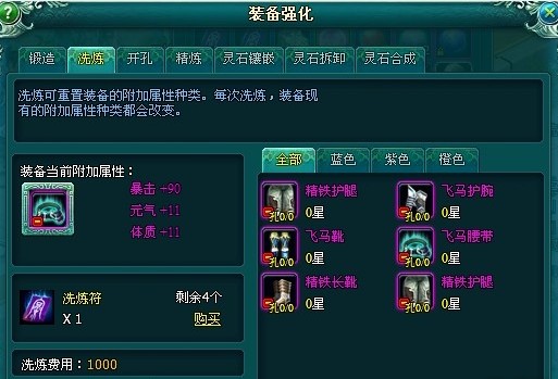 装备洗练,可以改变装备附加属性的种类。我们很少拿到一把附加属性让人满意的装备,需要使用洗练符将这些不满意的附加属性清洗掉并重新获得属性。在游戏中,白色装备没有附加属性,蓝色的有2个,而紫色装备就拥有3个附加属性。大家可以根据自己的职业特征洗出自己的主属性来。